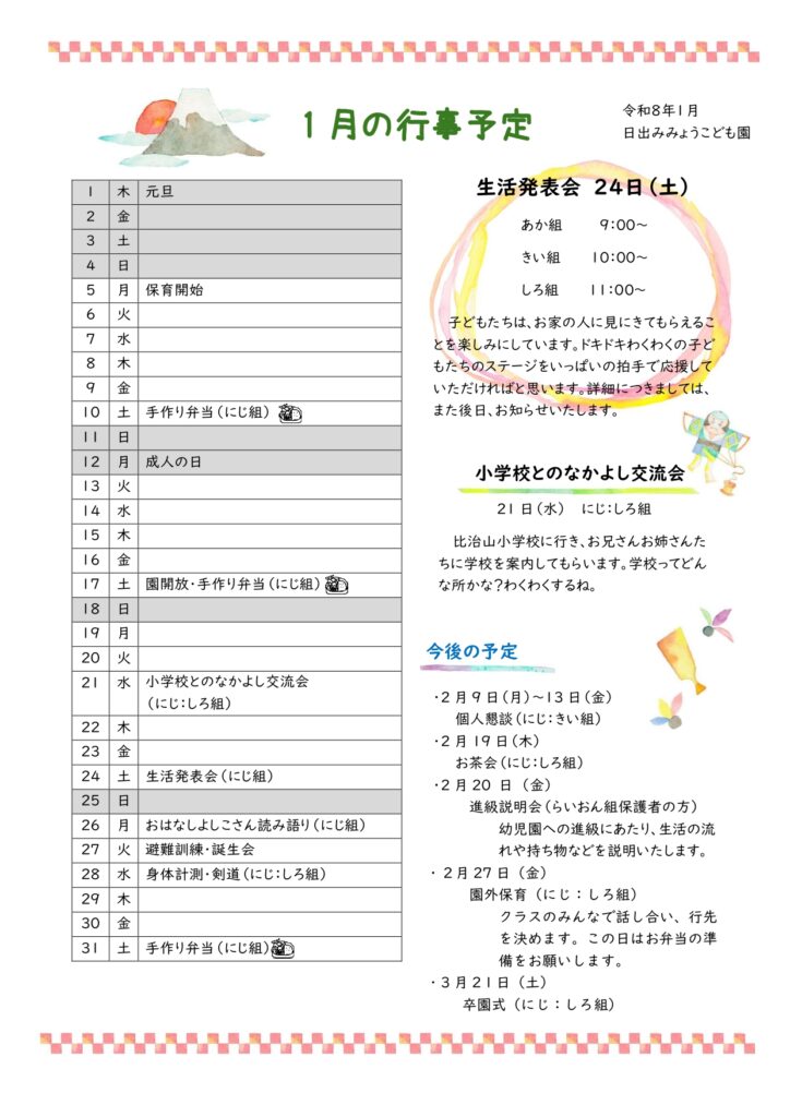 令和8年1月 園だより